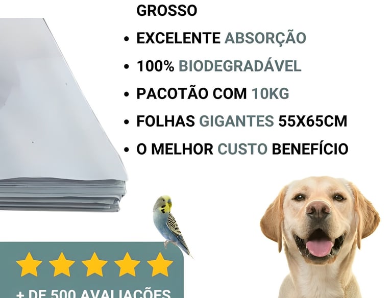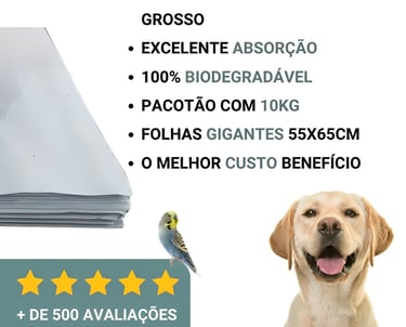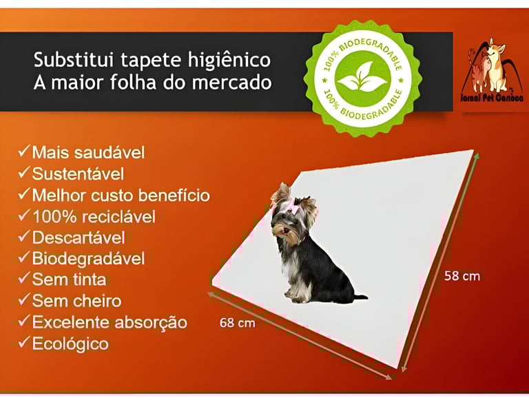 📰 Nosso jornal é absorvente, reciclado, ecológico, econômico e ideal para o dia a dia do seu cachorro ou gato.